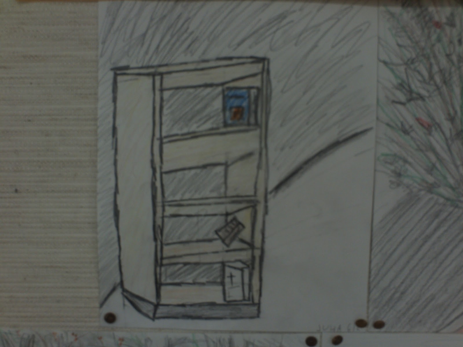 6-luokkalaisille annettiin tehtäväksi etsiä yksi esine tai kohta koululta ja piirtää se joko lyijykynällä tai värein.